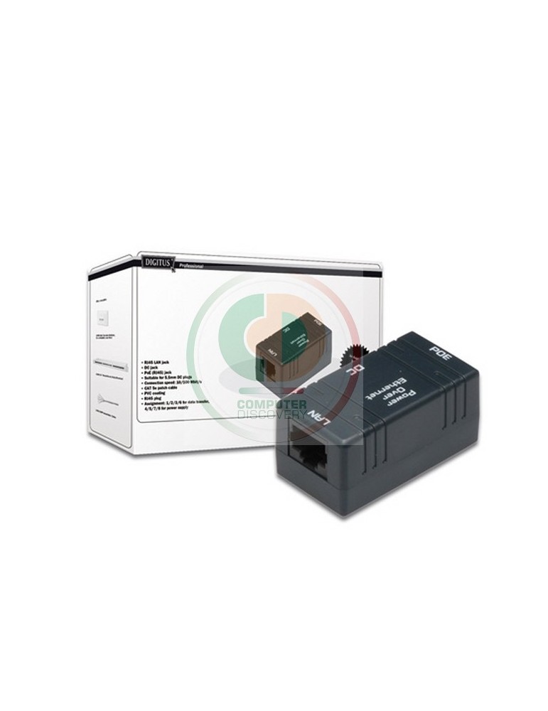 DIGITUS DN-95002 ADATTATORE POE PASSIVO PER DISPOSITIVI POE. Per alimentare dispositivi già predisposti per Power over Ethernet senza installare cavi di alimentazione aggiuntivi.Visto che molti dispositivi di rete devono essere alimentati, spesso si deve affrontare il problema della mancanza di alimentazione. Questo dispositivo permette di mettere l'alimentazione su un cavo di rete RJ45 e alimentare un dispositivo POE. Per reti 10/100 Cat.5E. Con un connettore RJ45 femmina, un connettore femmina alimentazione DC 5,5 mm, un connettore RJ45 PoE.Piedinatura: 1/2/3/6 per trasferimento dati, 4/5/7/8 per alimentazione. Predisposto per montaggio a muro.