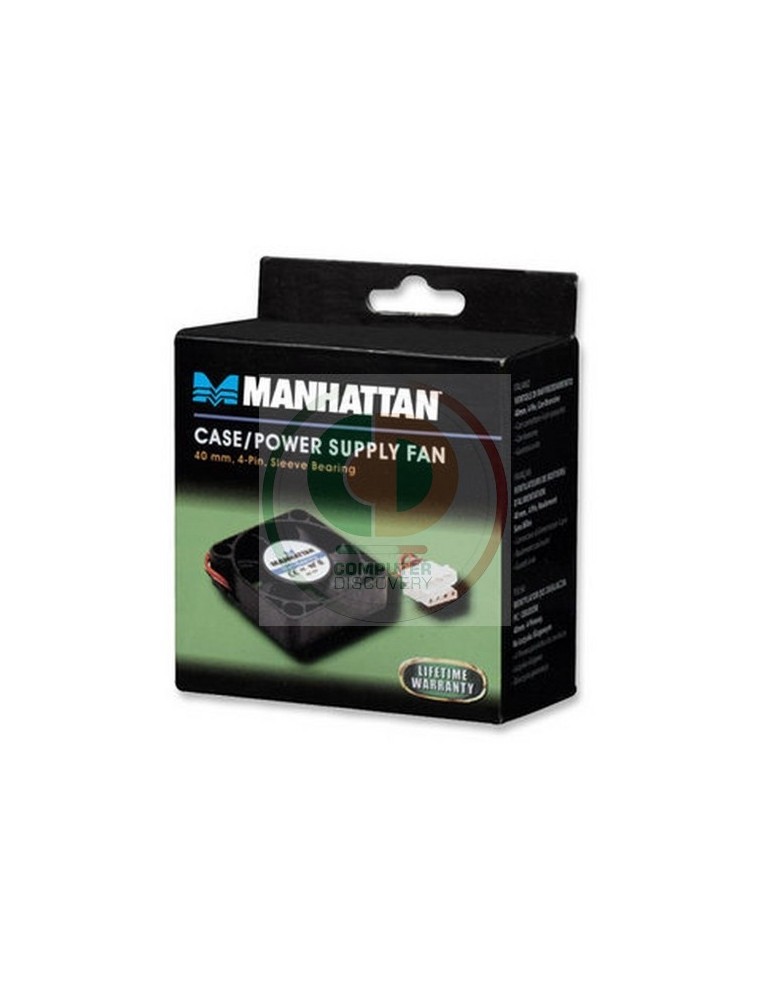 Manhattan 700665. Adatto per: Computer case, Tipo: Ventilatore, Diametro del ventilatore: 6 cm. Certificazione: CE, RoHS, RU, CSP, WEEE, ISO. Corrente limitata: 0,09 A. Peso: 34 g. Fan performance: 4,8 pdc/min, Dimensioni (LxPxA): 40 x 40 x 10 mm, Connettore: 4-pin