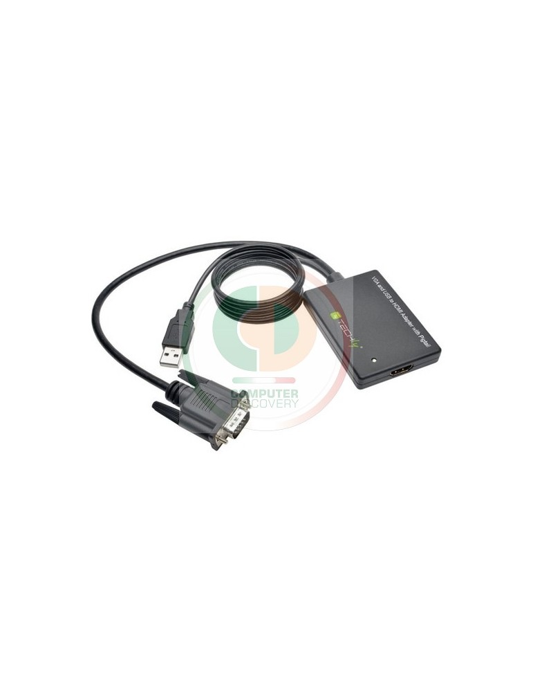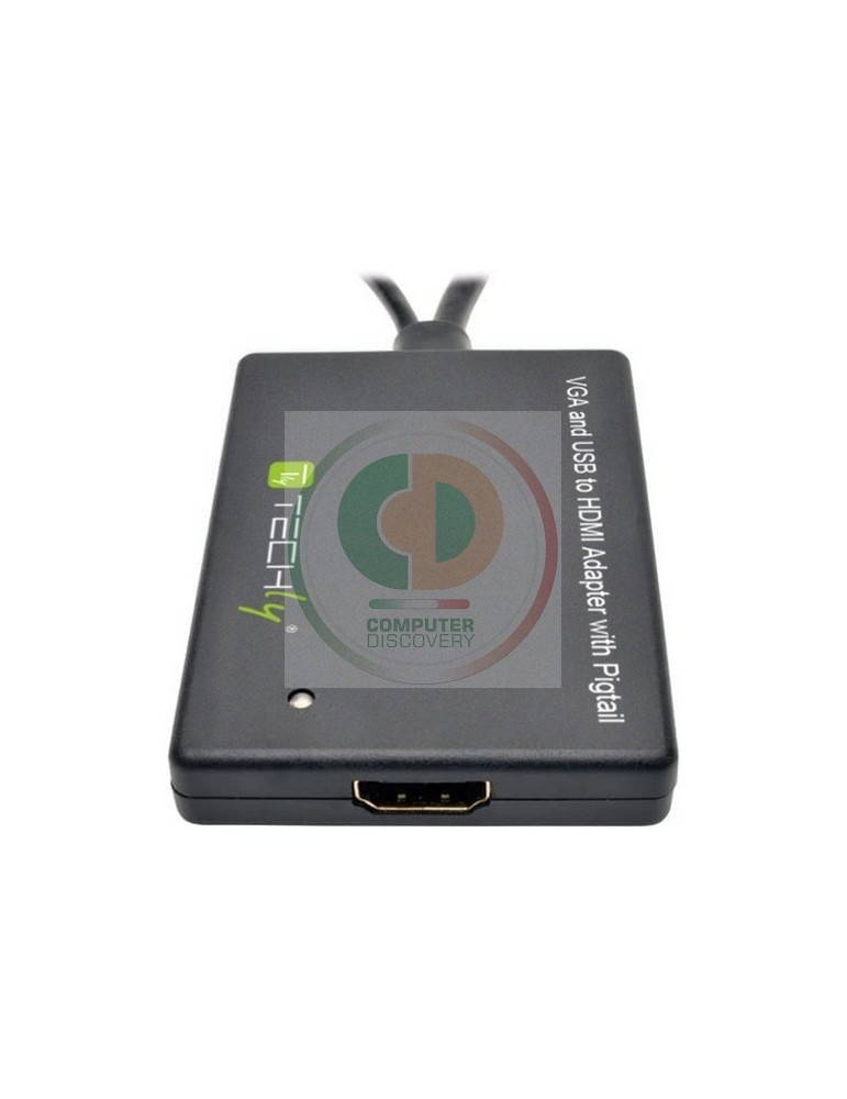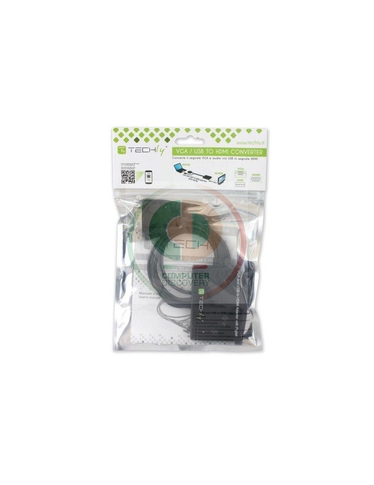 Techly Convertitore Cavo da SVGA e Audio a HDMI (IDATA HDMI-VGA3). Genere del connettore 1: Maschio, Genere del connettore 2: Femmina, Ampiezza banda: 165 MHz. Certificati di sostenibilità: CE, RoHS. Peso: 133 g, Larghezza: 80 mm, Profondità: 55 mm. Risoluzione supportata: 640 x 480, 800 x 600, 1024 x 768, 1280 x 720, 1280 x 768, 1280 x 960