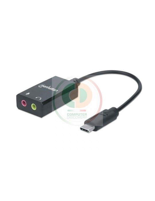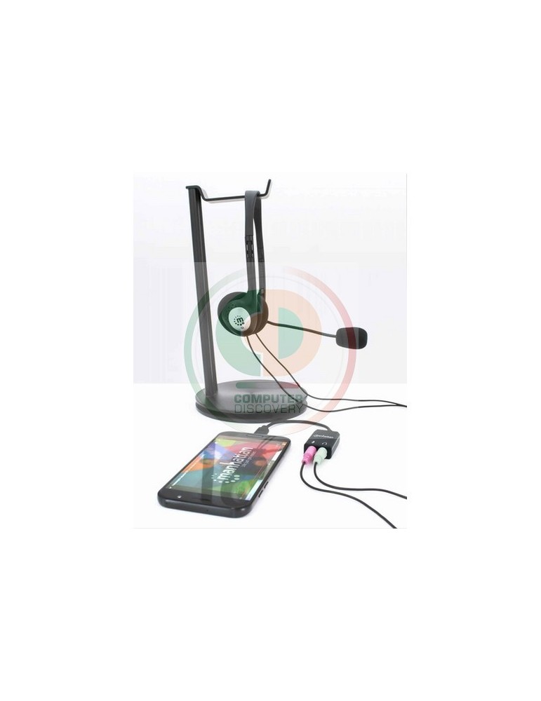 Manhattan 153317. Sistema audio: 2.1 canali. Interfaccia host: USB, Connessione cuffia: 3,5 mm. Chipset: CMedia HS100B, Colore del prodotto: Nero, Certificazione: CE FCC RoHS2 WEEE REACH. Peso: 10 g, Larghezza: 25,1 mm, Profondità: 41,2 mm