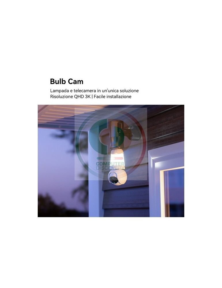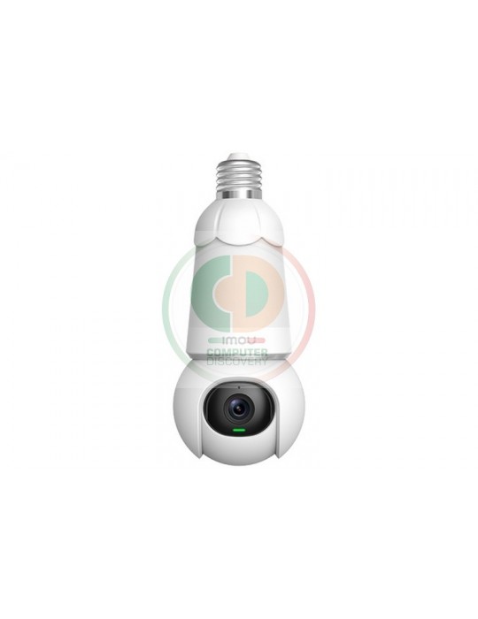 Imou Bulb Cam Telecamera di sicurezza motorizzata con attacco E27 con luce da 3W. Ideale per box, garage e dentro casa. Tipo: Telecamera di sicurezza IP, Posizionamento supportato: Esterno, Tecnologia di connessione: Wireless. Tipo di montaggio: Soffitto/muro, Colore del prodotto: Bianco, Fattore di forma: Lampadina. Angolo di rotazione: 360°, Angolo di visione dell'obiettivo, orizzontale: 98°, Angolo di visione dell'obiettivo, verticale: 54°. Tipo sensore: CMOS. Zoom digitale: 8x, Lunghezza focale fissa: 2,8 mm