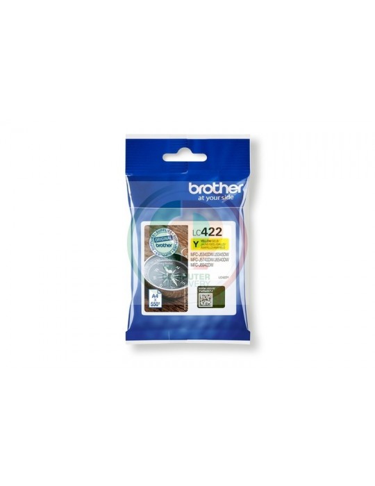 Brother LC-422Y. Tipo di fornitura: Confezione singola, Resa in pagine dell'inchiostro a colori: 550 pagine, Quantità per pacco: 1 pz