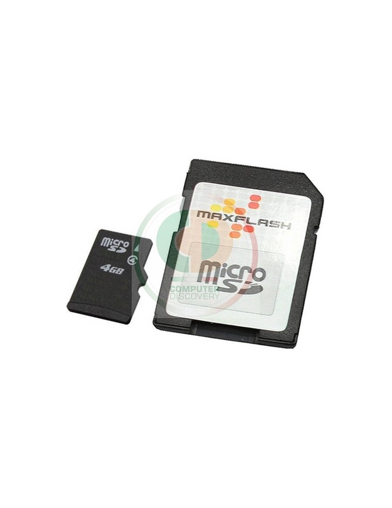 MaxFlash 4GB microSD. Capacità: 4 GB, Tipo flash card: MicroSD, Classe di memoria flash: Classe 4, Velocità di lettura: 4 MB/s, Velocità di scrittura: 4 MB/s. Colore del prodotto: Nero