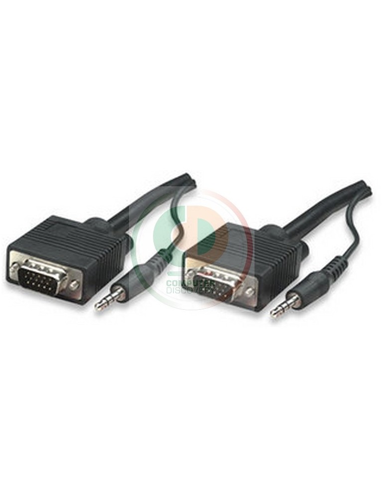 Manhattan HD15, 3.5mm/HD15, 3.5mm, M/M, 1.8m. Lunghezza cavo: 1,8m, Connettore 1: VGA (D-Sub) + 3.5mm, Connettore 2: VGA (D-Sub) + 3.5mm