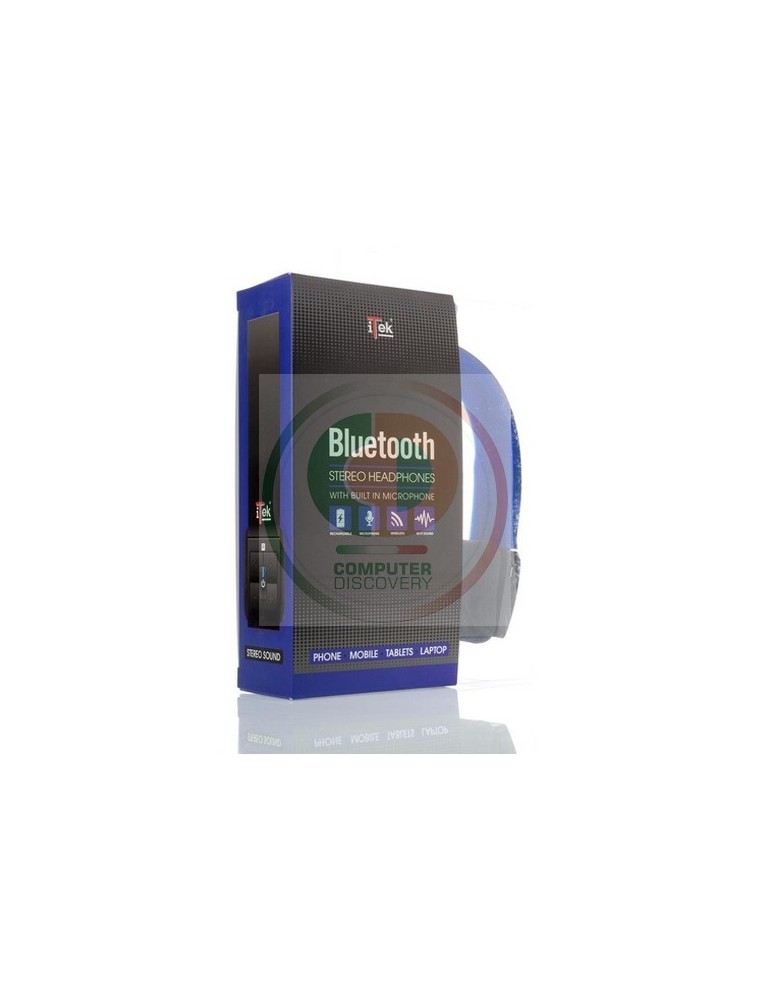 iTek ITEH03LBB. Tipo di auricolare: Stereofonico, Colore del prodotto: Nero, Blu, Fattore di forma: Padiglione auricolare. Tecnologia di connessione: Bluetooth. Range wireless: 20m, Versione Bluetooth: 4.0 EDR, Profili Bluetooth: A2DP, AVRCP, HFP, HSP. Impedenza: 32 Ohm. Tempo di conversazione: 15h, Tempo di stand-by: 250h, Riproduzione audio continua: 13h