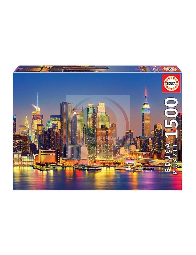 Educa Manhattan at Night. Tipo: Puzzle. Numero di pezzi del puzzle: 1500 pz. Genere: Città, Tema: Manhattan at Night, Pubblico di destinazione: Bambini e Adulti, Genere consigliato: Ragazzo/Ragazza, Età consigliata (min): 12 anno/i, Età consigliata (max): 99 anno/i. Larghezza: 850 mm, Altezza: 600 mm