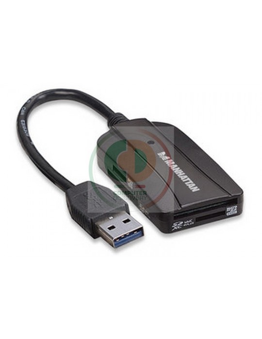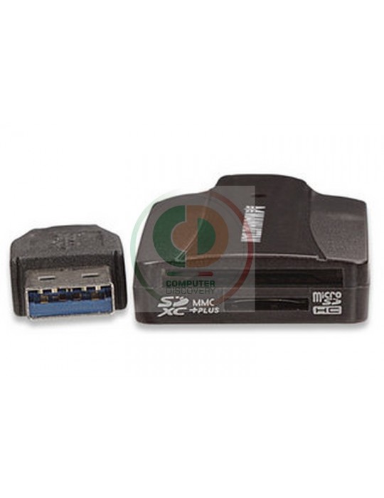 Manhattan 101660. Tipi schede di memoria: microSD (TransFlash), microSDHC, microSDXC, MMC, SD, SDHC, SDXC. Tipo interfaccia: USB 3.0, Lunghezza cavo: 0m. Compatibilità sistema operativo Mac: Mac OS X 10.5 Leopard, Mac OS X 10.6 Snow Leopard, Mac OS X 10.7 Lion, Mac OS X 10.8 Mountain Lion. Colore del prodotto: Nero. Larghezza: 6 cm, Profondità: 3,2 cm, Altezza: 1,1 cm