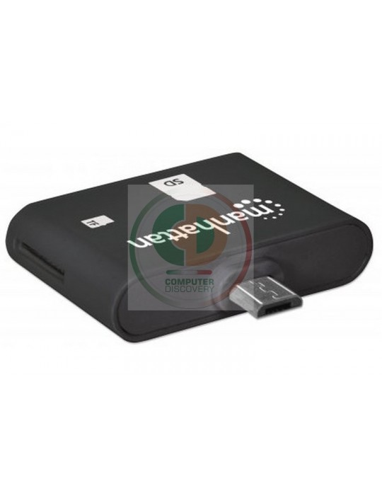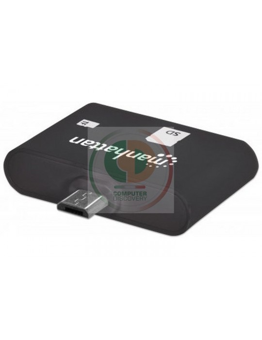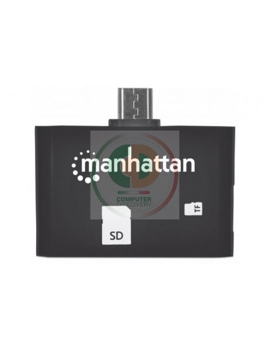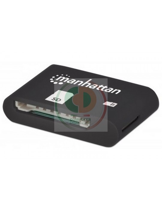 Manhattan 406208. Tipi schede di memoria: MicroSD (TransFlash), MicroSDHC, MicroSDXC, MMC, MMC Mobile, RS-MMC, SD, SDHC, SDXC. Tipo interfaccia: USB 2.0. Velocità di trasferimento dati: 480 Mbit/s. Colore del prodotto: Nero. Larghezza: 4 cm, Profondità: 3,5 cm, Altezza: 1 cm