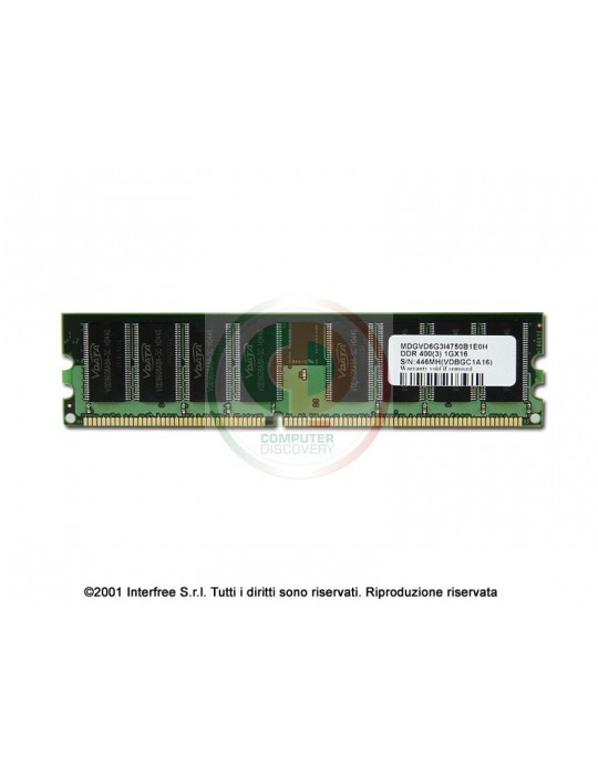 Modulo di memoria ad elevatissime prestazioni con capacità 1.0GB. La particolare architettura interna di questo modulo è stata progettata appositamente per eliminare qualsiasi ciclo di attesa in lettura/scrittura da parte della cpu. Questi moduli sono usati principalmente per aumentare le prestazioni di computers di elevata potenza quali servers o stazioni grafiche. Funzionano con FSB (Front Side Bus) a 400MHz per il massimo delle prestazioni. Funzionano solamente con main board che montano socket per memorie DDR.