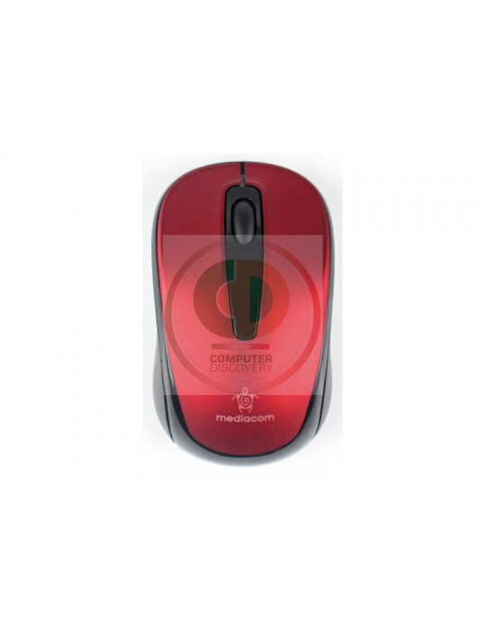 Mediacom AX877. Fattore di forma: Ambidestro. Tecnologia di rilevamento del movimento: Ottico, Interfaccia dispositivo: RF Wireless, Risoluzione movimento: 1000 DPI, Tipo di pulsanti: Tasti premuti, Numero di tasti: 2, Tipo di scorimmento: Rotella. Alimentazione: Batterie. Colore del prodotto: Nero, Blu, Rosso