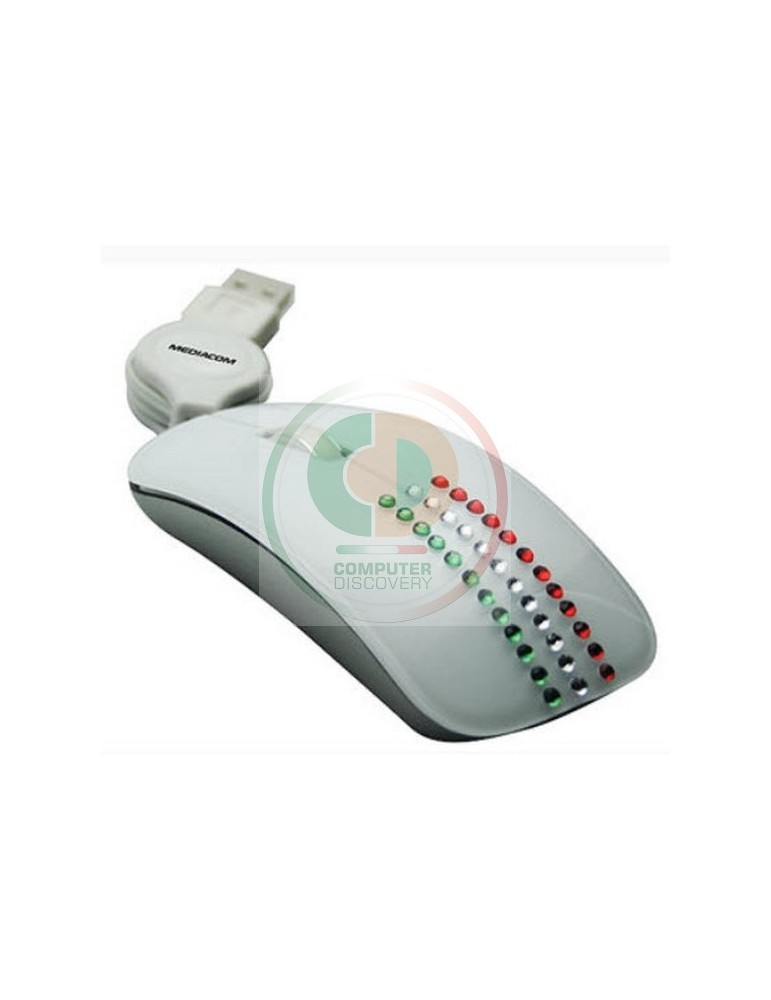 Mediacom Crystal Mouse. Tecnologia di rilevamento del movimento: Ottico, Interfaccia dispositivo: USB tipo A, Risoluzione movimento: 1000 DPI, Numero di tasti: 3, Tipo di scorimmento: Rotella. Colore del prodotto: Bianco