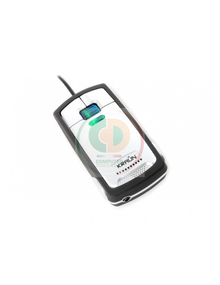 MousePhone Kraun offre in un unico prodotto un mouse ottico con sensore da 800DPI ed un telefono IP impiegabile con i software di audio conferenza via internet. E' compatibile con Skype. Il mouse dispone di due tasti e uno scroller per la navigazione in internet. Un altoparlante e un microfono sono integrati nel mouse ed è possibile commutare automaticamente o manualmente dal funzionamento mouse al funzionamento telefono. Il volume può essere controllato per mezzo dello scroller che agisce come potenziometro. Sul mouse è presente una presa jack per cuffie impiegabile sia per le telefonate sia per l' ascolto dell' audio del PC in quanto, all' interno della periferica, è integrata una vera e propria scheda audio. Per entrambe le funzionalità è sufficente collegare il mouse IP ad una porta USB 1.1 o 2.0 del pc. E' compatibile con Windows 2000 e Windows XP.
