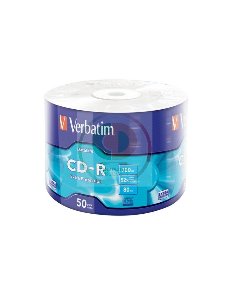 Verbatim CD-R Extra Protection. Tipo: CD-R, Capacità originaria: 700 MB, Quantità per pacco: 50 pz. Velocità di scrittura CD: 52x