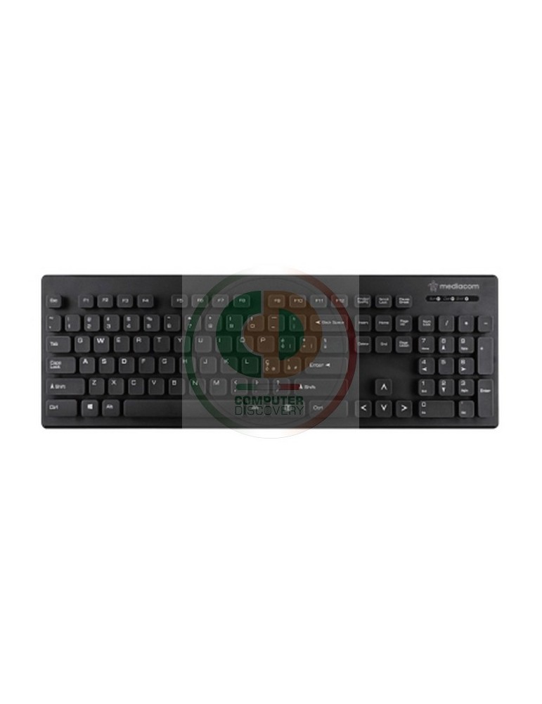 Mediacom CX2500. Fattore di forma tastiera: Standard. Stile tastiera: Dritto. Interfaccia dispositivo: USB, Struttura tastiera: QWERTY, Numero pulsanti tastiera: 103, Utilizzo raccomandato: Casa. Colore del prodotto: Nero