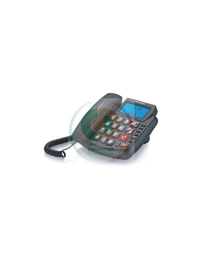 New Majestic PHF-BILLY-200. Tipo: Telefono analogico, Tipo di apparecchio: Cornetta cablata. Telefono con vivavoce, Capacità rubrica: 3 voci. Identificatore di chiamata. Colore del prodotto: Nero. Numero di cornette incluse: 1