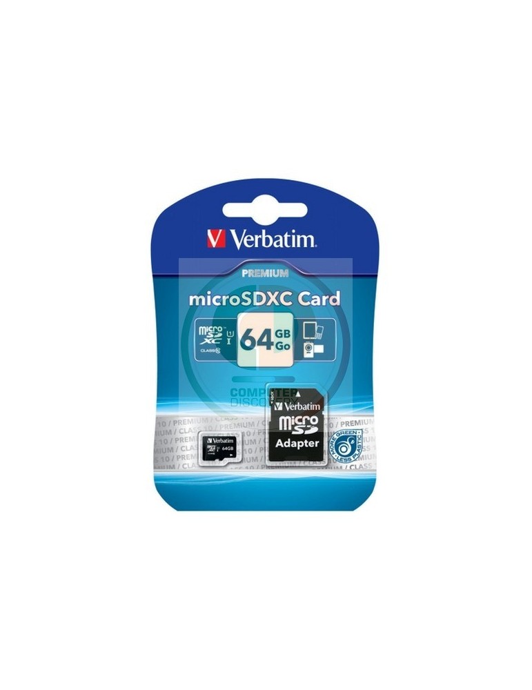 Verbatim 64GB microSDXC (Adapt). Capacità: 64 GB, Tipo flash card: Micro Secure Digital Extended Capacity (MicroSDXC). Colore del prodotto: Nero. Adattatore memoria incluso: SD, Tipo di imballo: Bolla