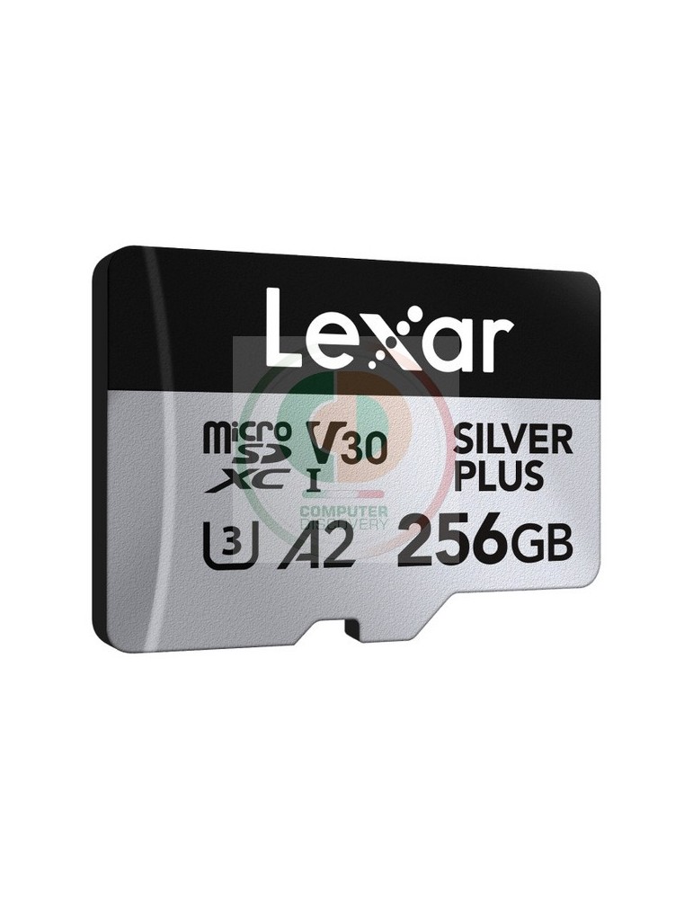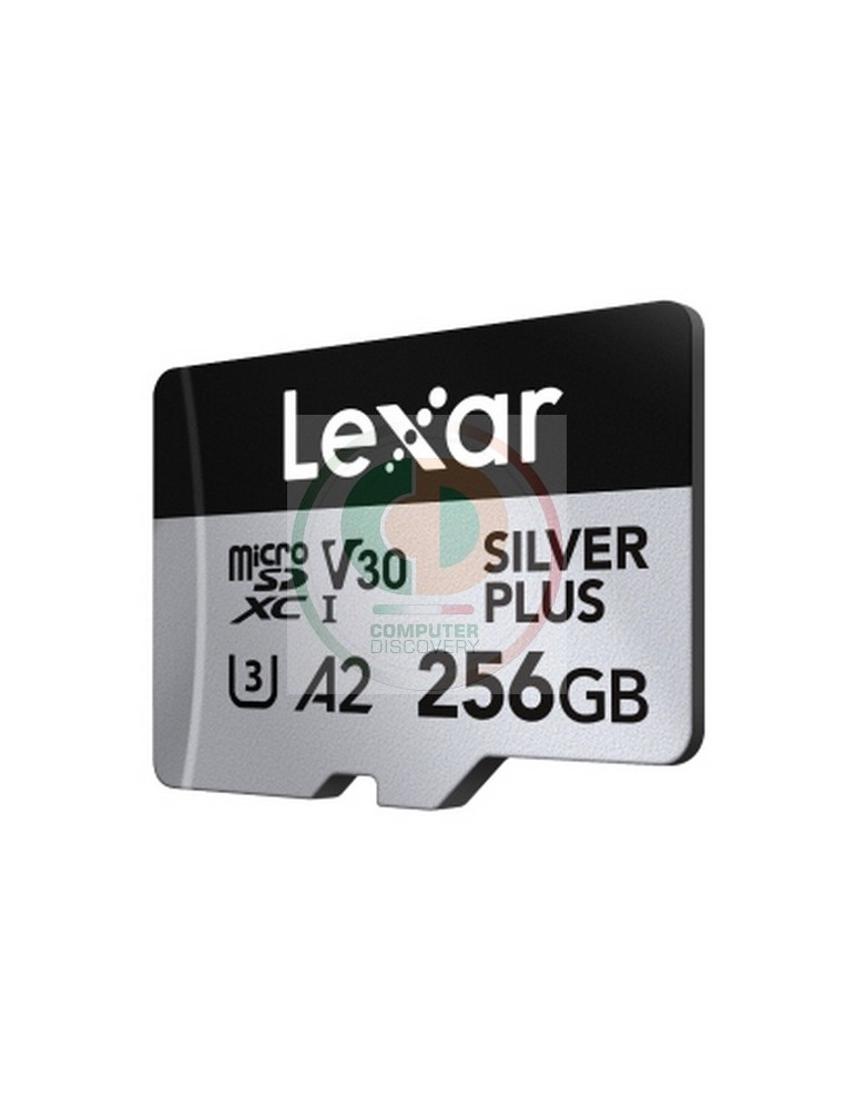 Lexar Professional SILVER PLUS. Capacità: 256 GB, Tipo flash card: MicroSDXC, Classe di memoria flash: Classe 3, Tipo di RAM: UHS-I, Velocità di lettura: 205 MB/s, Velocità di scrittura: 150 MB/s, Classe di velocità UHS: Class 3 (U3), Classe di velocità video: V30. Funzioni di protezione: Resistente agli urti, A prova di magnete, Resistente agli urti, A prova di temperatura, A prova di..., Colore del prodotto: Nero, Argento